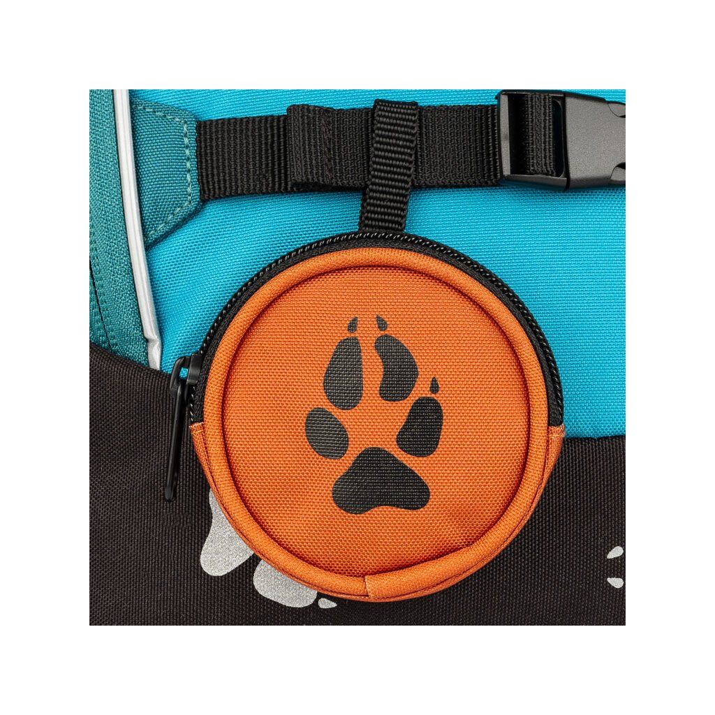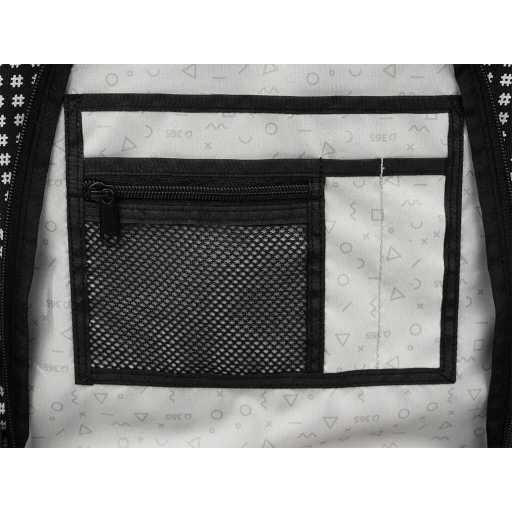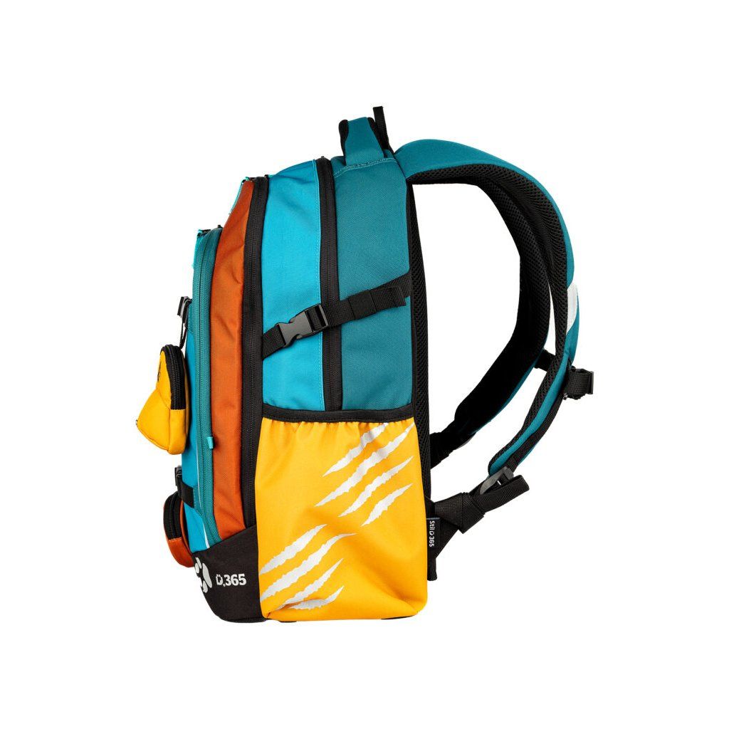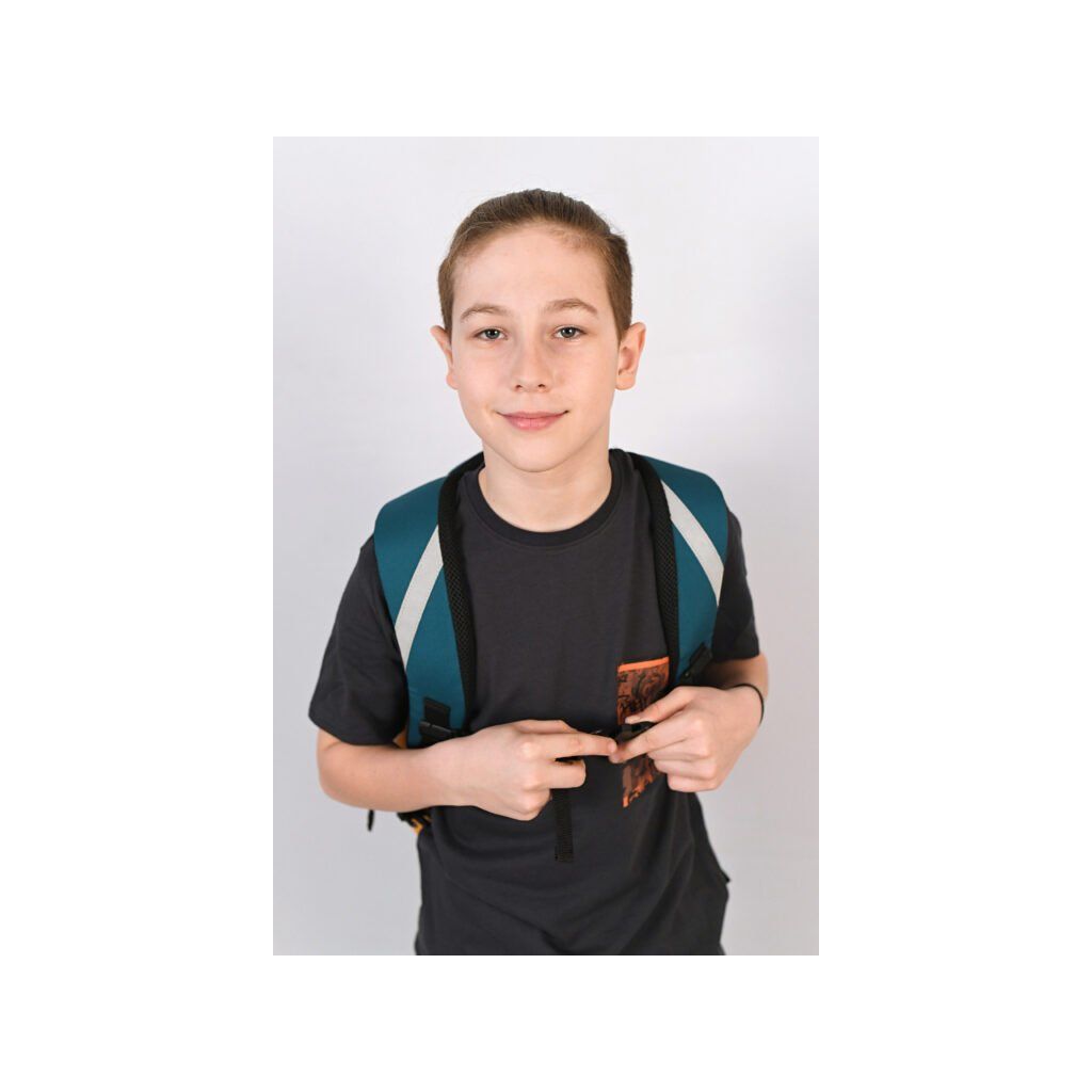 A formatervezés a következőket tartalmazza biztonsági fényvisszaverő elemek minden oldalon elhelyezve, hogy a gyermek jobban látható legyen sötétben és szürkületben egyaránt. A hátizsák víztaszító anyag (100% poliészter) és megerősített vízálló fenék hogy megvédje a tartalmat a nedvességtől és a szennyeződésektől. Köszönhetően rejtett zsebek az értéktárgyak számára a tágas kamrák a hátizsák elegendő helyet kínál a nagyobb A4-es tankönyvek számára. A fő- és középső rekeszek ehhez a formátumhoz igazodnak, az elülső zsebben pedig praktikus szervezőt találsz az apróságok, kulcsok és iskolai felszerelések számára.