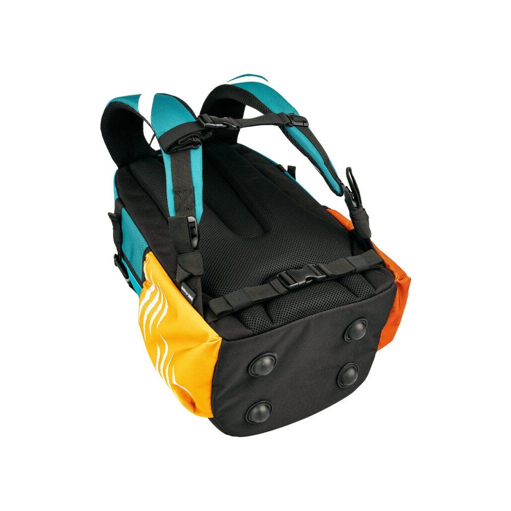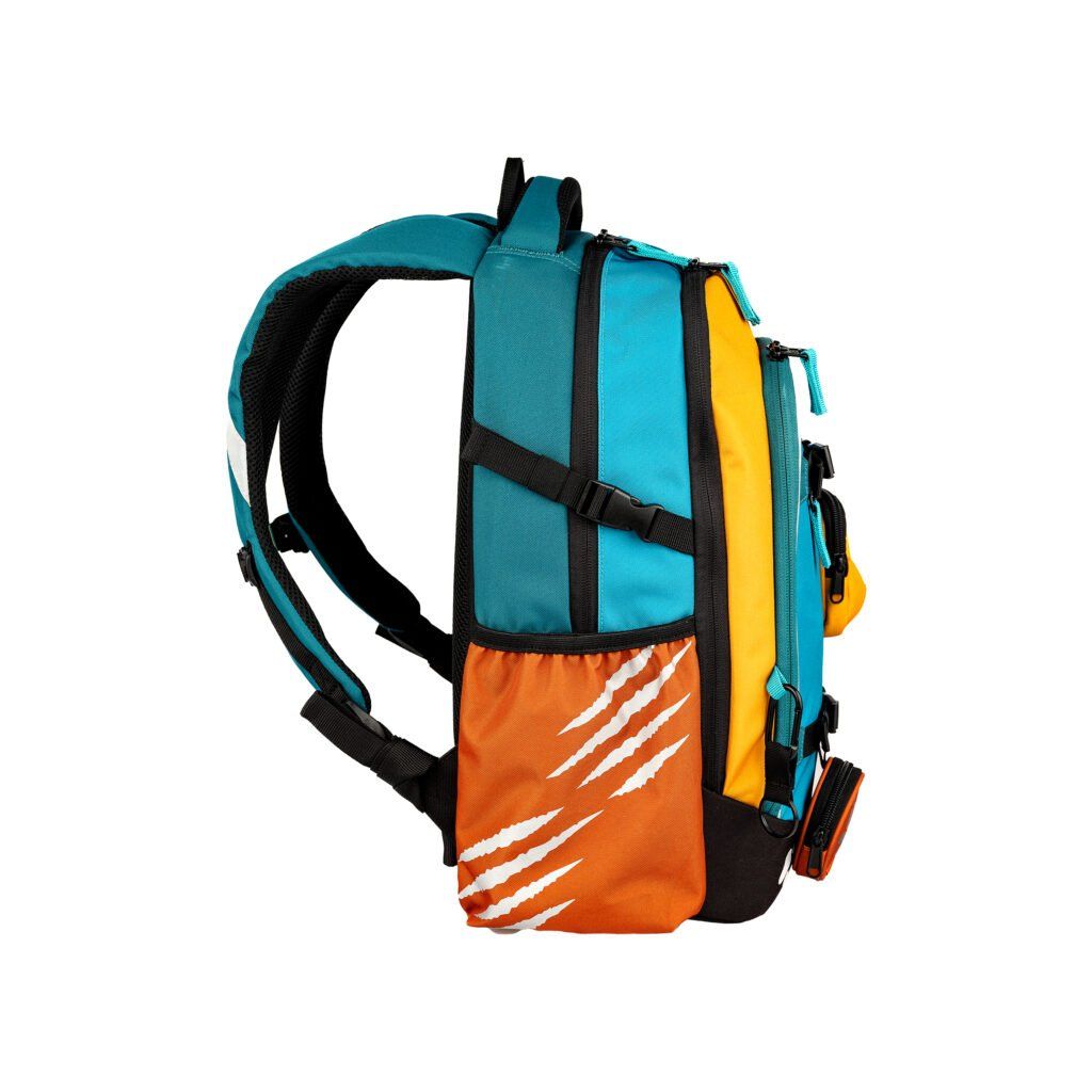 A hátizsák a következőkkel van felszerelve párnázott vállpántok amely könnyen a gyermek magasságához igazítható. Mellkasi öv a állítható derékszíj biztosítja a súly egyenletes eloszlását és a hátizsák stabil elhelyezkedését a háton. Oldal húzózsinór csatok lehetővé teszi az üres hátizsák térfogatának csökkentését, ami jobb stabilitást biztosít hordozás közben. Pántok az elülső zsebben ideálisak egy pulóver vagy kabát rögzítéséhez az iskolából hazafelé vezető úton, a felső pánt alatt pedig egy rejtett zseb az értéktárgyak számára amely biztonságos tárolást kínál kisebb személyes tárgyak számára.