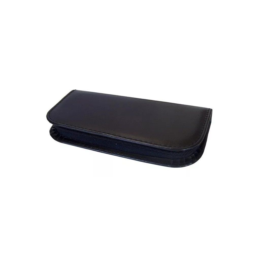 Minőségi diák bőr tolltartó, úgynevezett "ceruzatartó", 10 zsebbel rendelkezik az íróeszközöknek és 2 zsebbel a radírnak és a ceruzahegyezőnek.