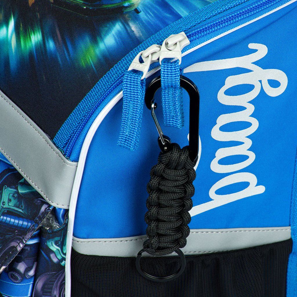 Fényvisszaverő elemek: az aktatáska stratégiai pontjain biztonsági elemeket helyeztek el a gyermek fokozott láthatósága érdekében rossz látási viszonyok között vagy sötétben.