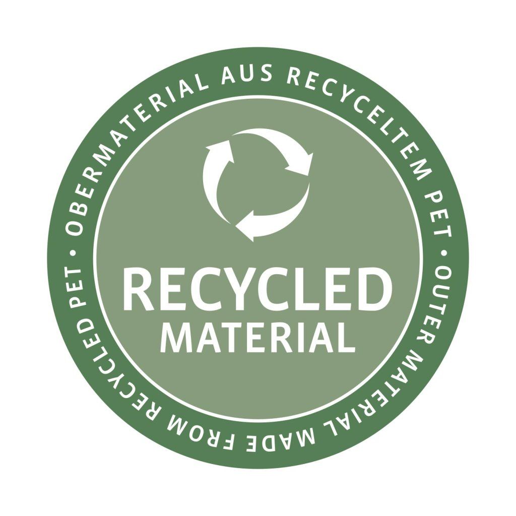- újrahasznosított PET-palackokból készült, robusztus és víztaszító anyag